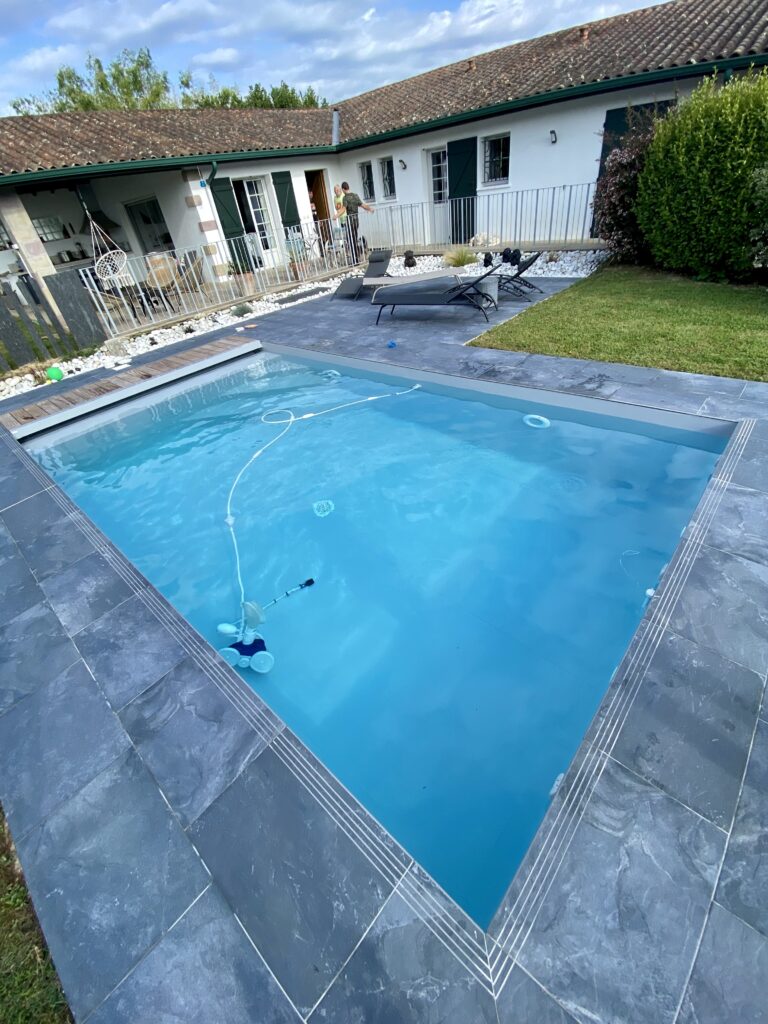 Les terrasses en bois ou en composite offrent une finition esthétique et pratique autour de la piscine. Le bois naturel procure un aspect chaleureux et authentique, tandis que le composite est plus facile à entretenir et résistant aux intempéries. Ces matériaux sont parfaits pour créer une zone de détente autour de la piscine, idéale pour bronzer ou se détendre après la baignade.
